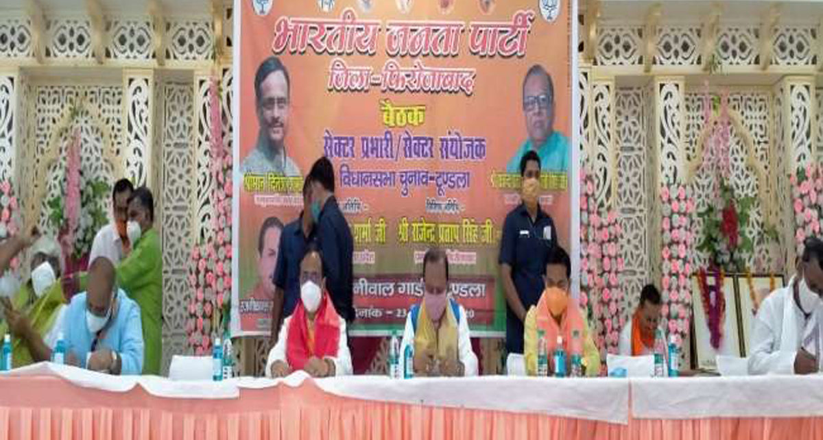 फिरोजाबाद: टूंडला विधानसभा क्षेत्र में होने वाले उपचुनाव की तैयारियों का जायजा लेने के लिए आज डिप्टी सीएम डॉ. दिनेश शर्मा फिरोजाबाद पहुंचे। डिप्टी सीएम ने बैनीवाल गार्डन में भाजपा के पदाधिकारियों एवं कार्यकर्ताओं के साथ समन्वय बैठक में शिरकत की। डिप्टी सीएम दिनेश शर्मा के साथ ब्रज क्षेत्र अध्यक्ष रजनीकांत माहेश्वरी समेत समिति के सदस्य मौजूद रहे।