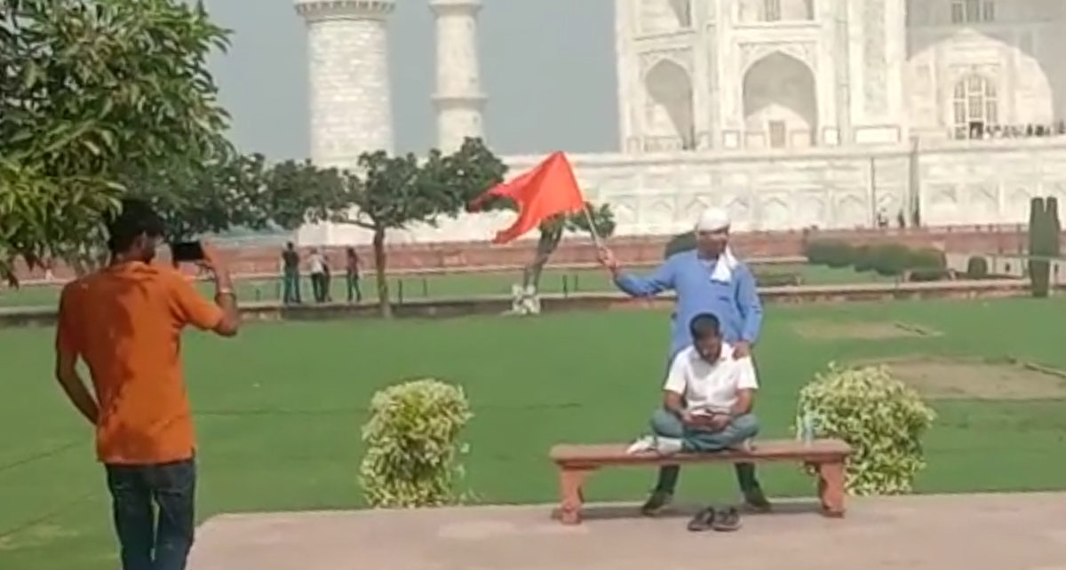 वायरल हो रहे इस वीडियो में हिंदूवादी नेता ताजमहल के सामने भगवा झंडा लिए हुए नजर आ रहे हैं। मामले की जानकारी मिलते ही सीआईएसएफ के जवान भी मौके पर पहुंच गए। हिन्दूवादियों को रोक लिया और पूछताछ के लिए अपने कार्यालय में ले गए। उनके फोन चेक किए और फिर सभी को छोड़ दिया गया।