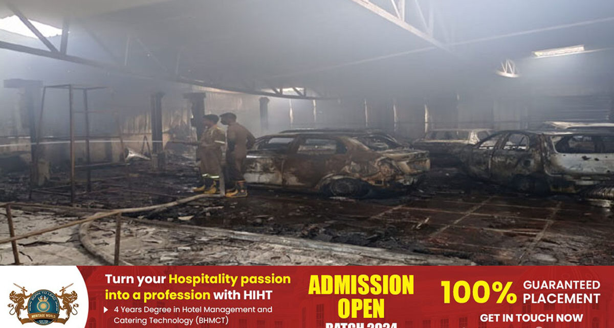 कार गैरेज में लगी भीषण आग, कई कार जलकर हुई खाक