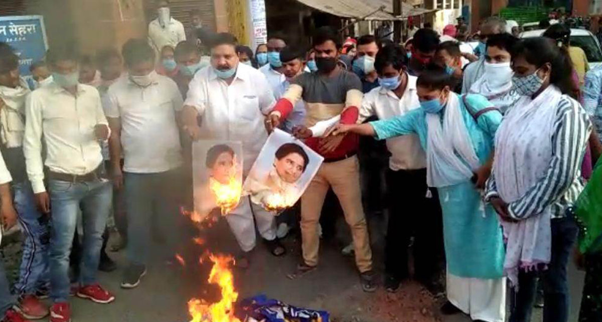 आगरा: दलितों की राजधानी कहे जाने वाले आगरा में अब जाटव समाज का बहुजन समाज पार्टी से मोहभंग होता नज़र आ रहा है। किसी समय में ताजनगरी में विधानसभा की नौ सीटों में से सात सीटों पर बसपा का कब्जा था। लेकिन आज बसपा पार्टी के झंडे और उसकी अध्यक्ष मायावती के फोटो जाटव महापंचायत के द्वारा जलाए जा रहे हैं। इस दौरान समाज के लोगों ने बसपा सुप्रीमों के खिलाफ जमकर नारेबाजी कर अपना विरोध जताया।